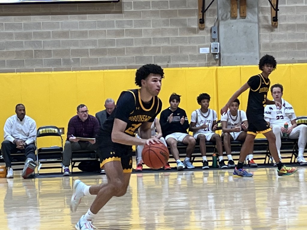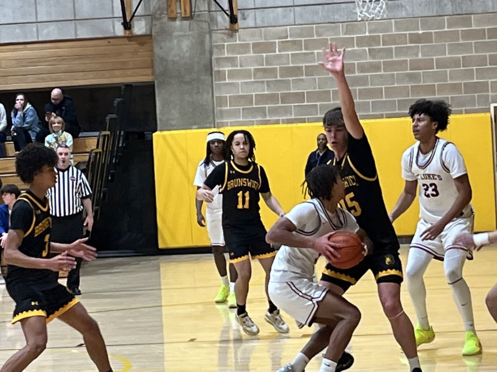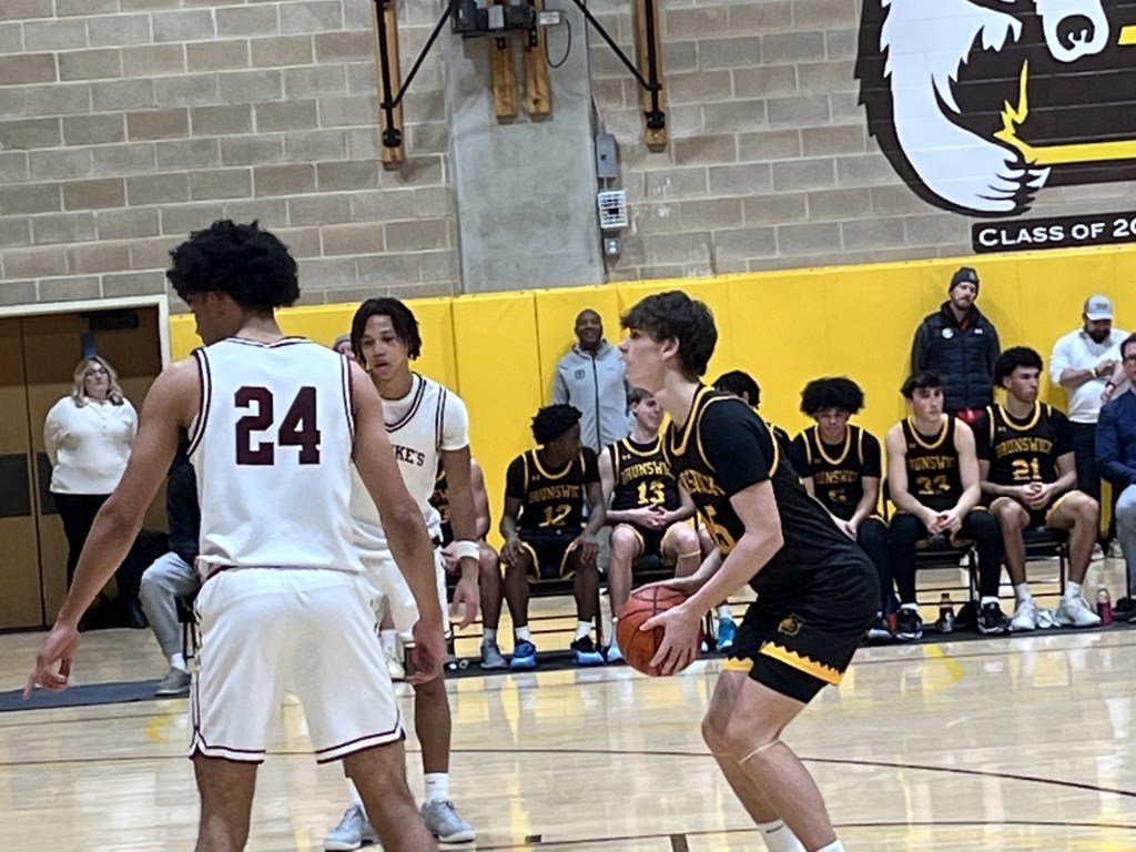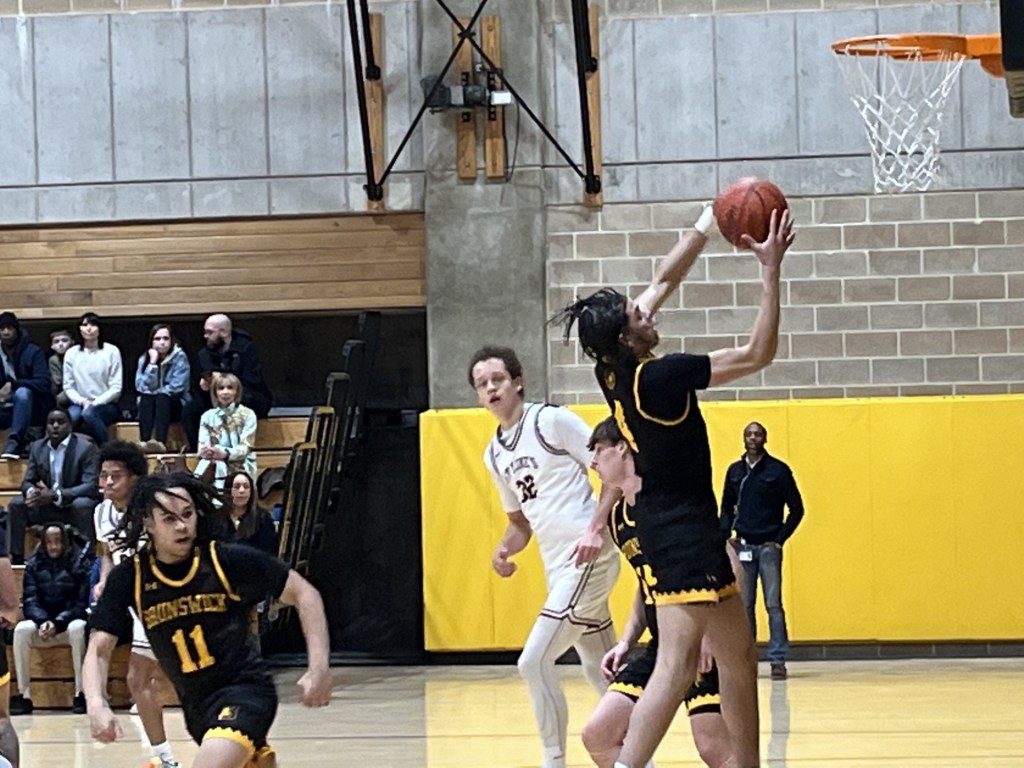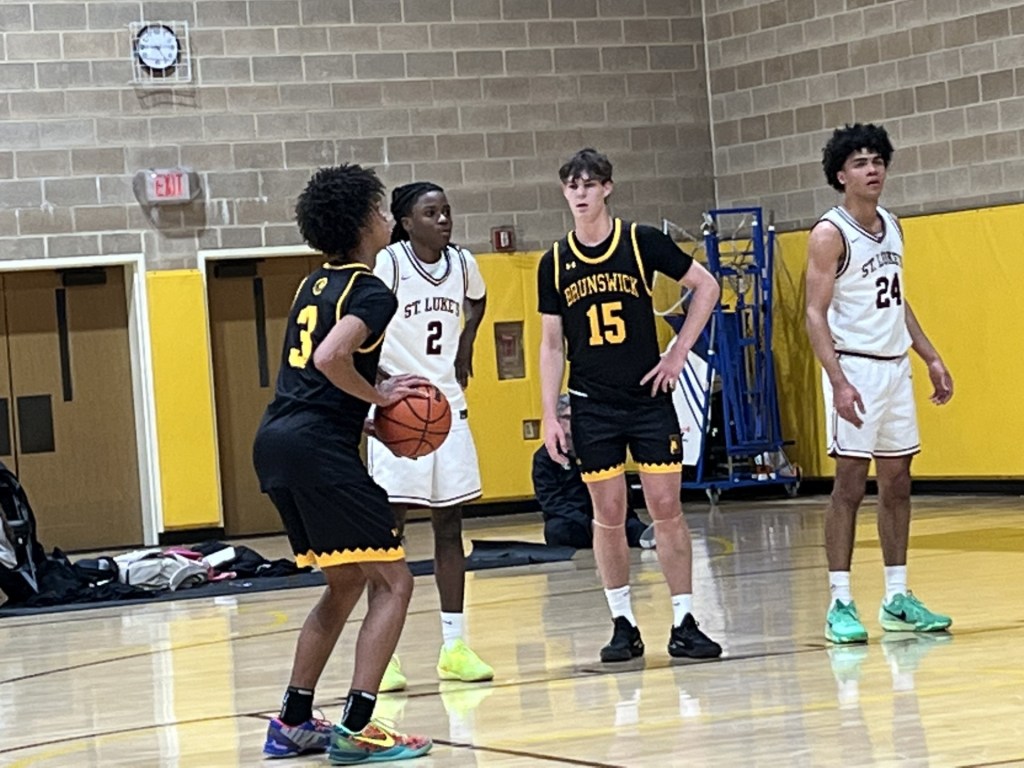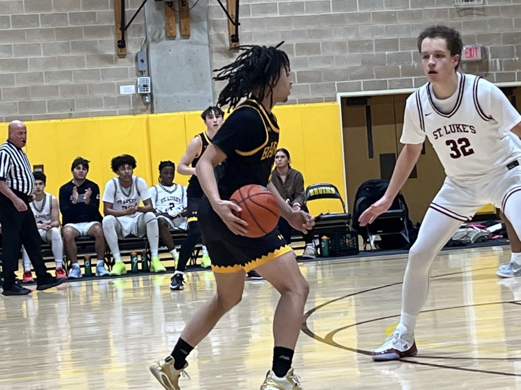 St. Luke’s got out to a 6-2 lead, Lum converted a layup and Jean threw down a dunk in transition, evening the score at 6-6 for Brunswick. A pair of foul shots by Jean gave the Bruins the lead at 12-10 with 10:24 remaining in the first half.