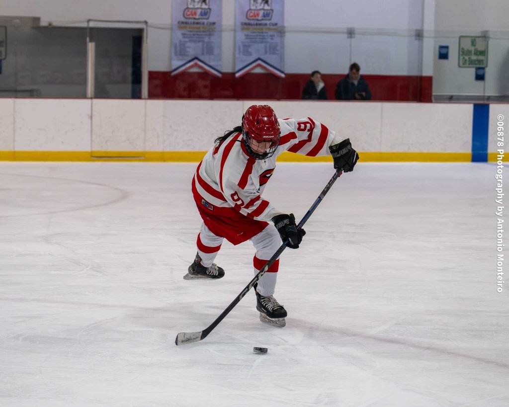 06878 Photography by Antonio Monteiro: Greenwich forward Miren Woolven moves the puck along the ice vs. Guilford.