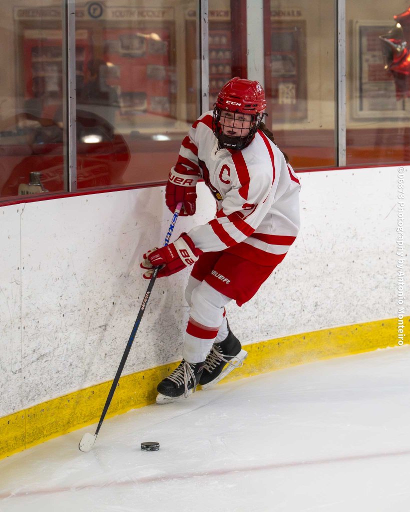06878 Photography by Antonio Monteiro: Greenwich’s Maddy Weiner skates up the ice with the puck vs. Guilford High.