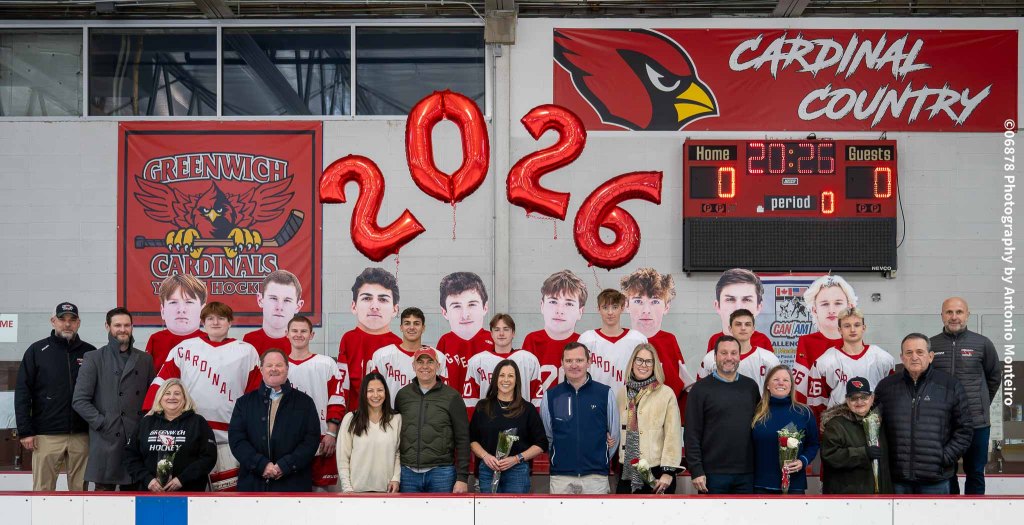 The Cardinals finished their 2025-2026 regular season with three consecutive victories, defeating FCIAC opponents Stamford/Westhill and Ridgefield, then topping non-conference/state foe, North Haven. Greenwich came from behind to beat the combined Stamford/Westhill team, 5-3, on Feb. 14th, a game in which the Cardinals celebrated Senior Night. The Cardinals were then victorious on Feb. 16th at home versus Ridgefield, 3-1, before upending North Haven on the road on Feb. 18, 7-4.