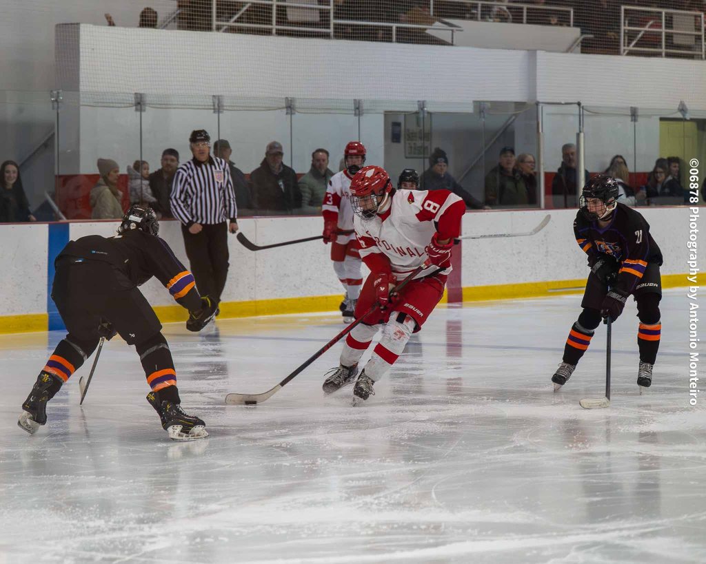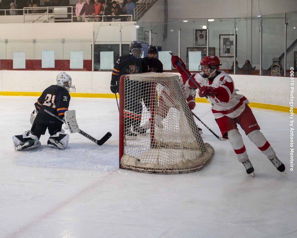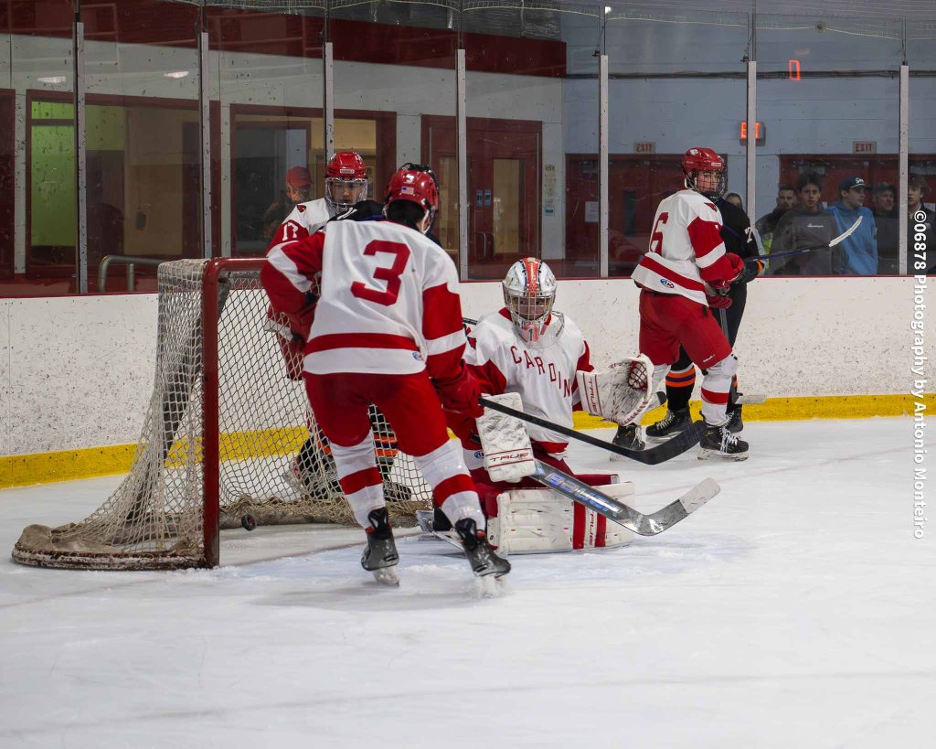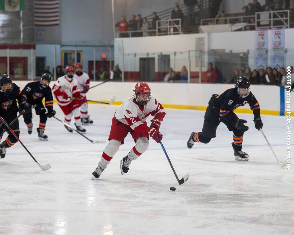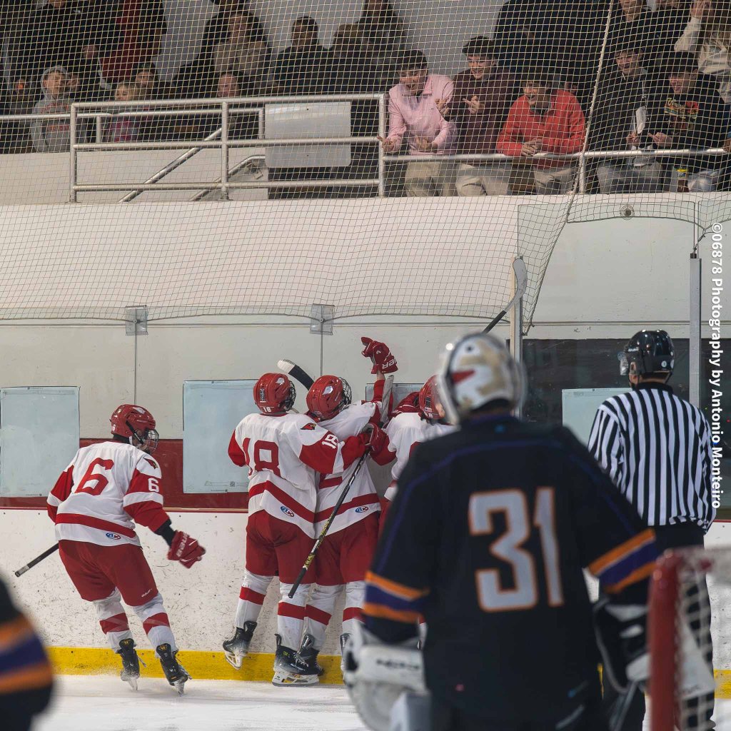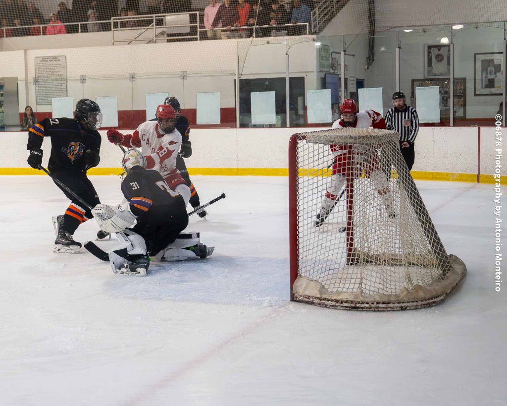 The Cardinals closed to within 3-2 at the 5:40 mark of the second period. Junior Thomas Lanzarone tallied off a one-timer with sophomore Aidan Murray and senior William Flatow each assisting on the goal, cutting Stamford/Westhill’s edge to 3-2.