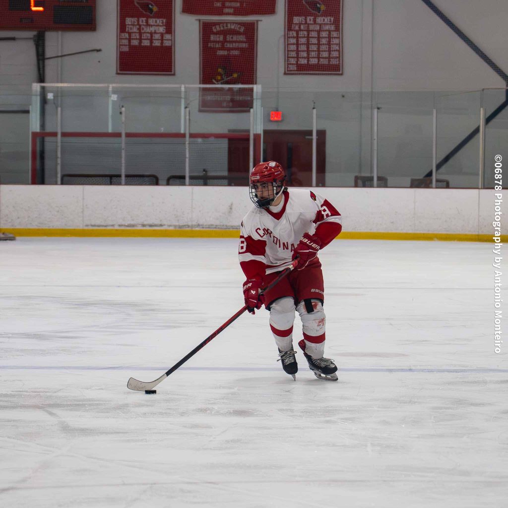 Senior Jason Rosenthal started in goal for the Cardinals and junior Will Salib took over in net during the second period in the winning effort. Greenwich captains Trent O’Neil, Teddy Johnson and Boden Farmer are among the seniors, which include Rosenthal, Flatow, Odefelt, Bruce Spelman and Alex Zhukovsky.
