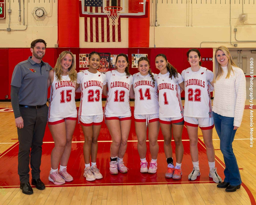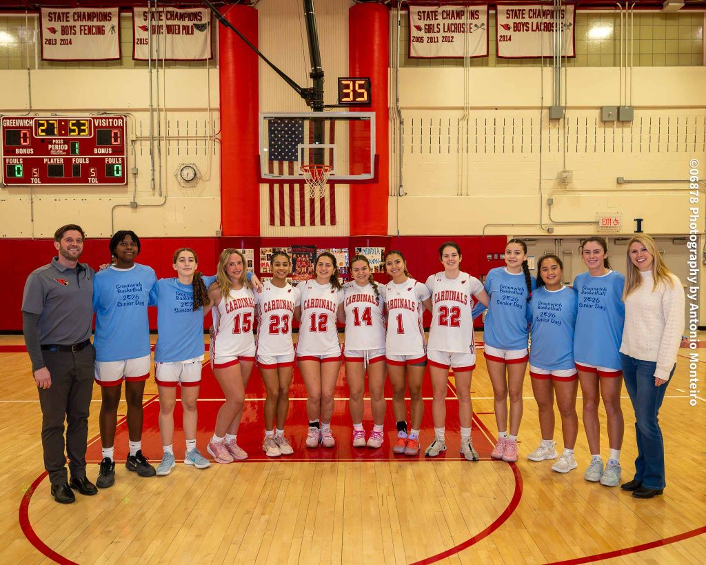 About to conclude one of their most successful regular seasons in program history, the members of the Greenwich High School varsity girls basketball team were especially excited to take the court when Westhill High School came to town on Feb. 17, because it was Senior Night for the hosts – a game they especially look forward to every year.