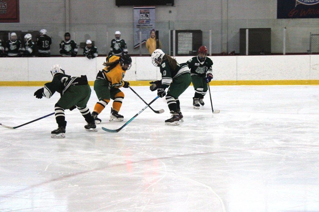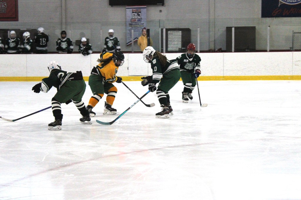 Sydney Bellissimo converted a shot from the slot, tying the score at 4-4 for the Tigers with 1:17 left in the second period, giving the hosts the momentum heading into the final period.