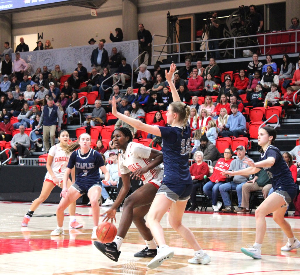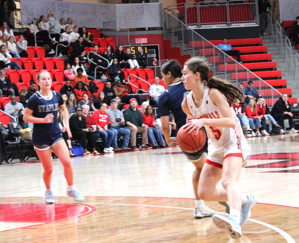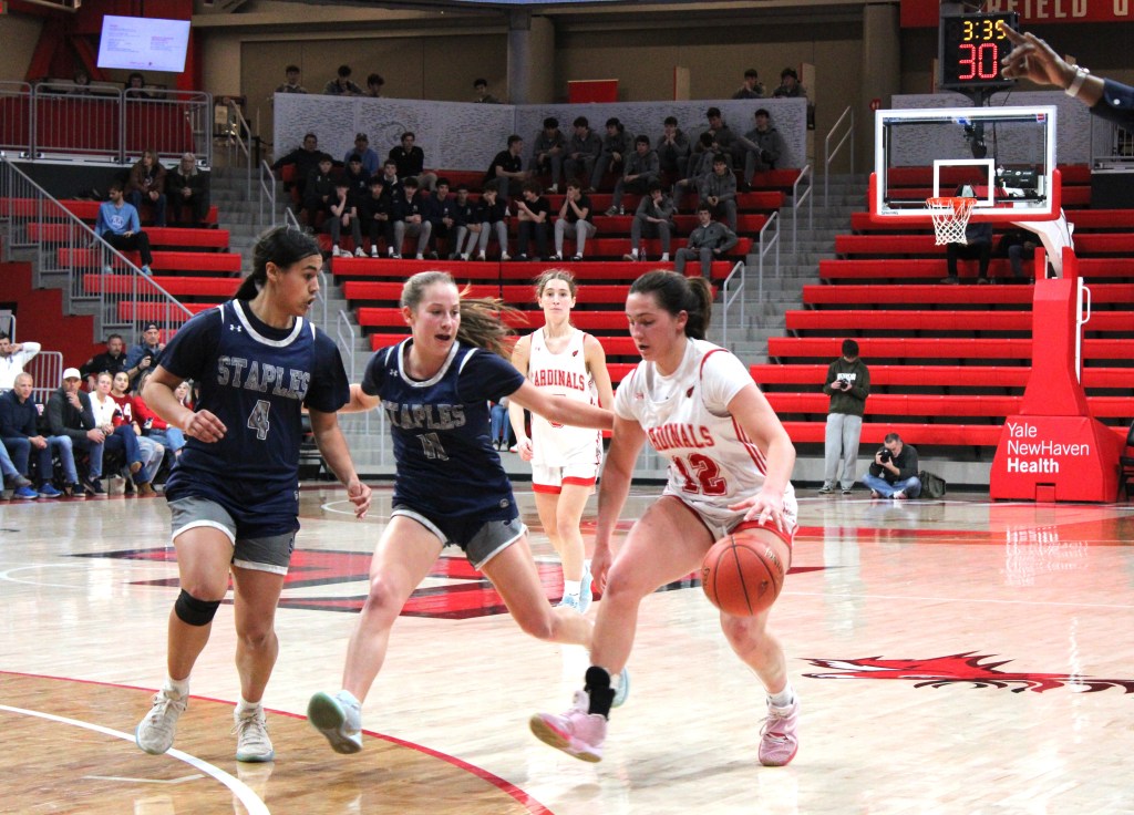 Staples was paced by junior captain/forward Chloe Smith, who scored 22 points and sank a pair of 3-point shots. Freya Harvey, a senior guard/captain, added 17 points, including three 3-pointers for the Wreckers, who faced a 12-2 deficit against the Cardinals after the first quarter and trailed 28-14 at halftime.