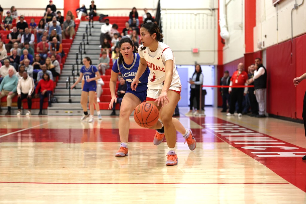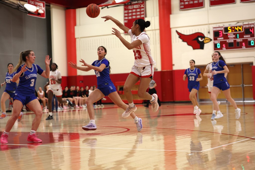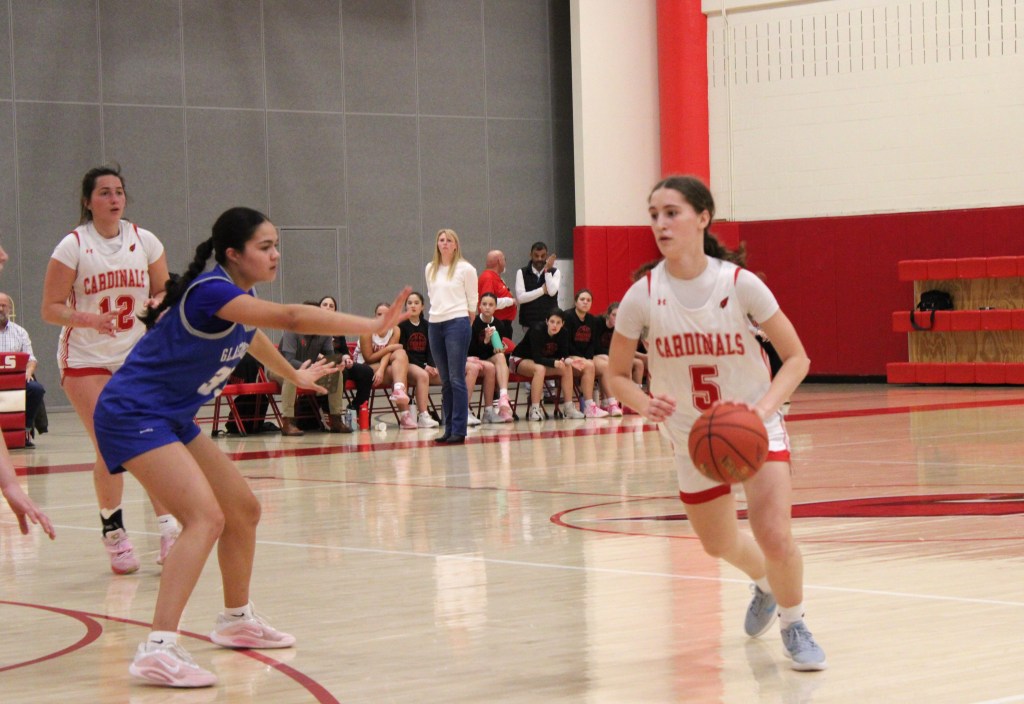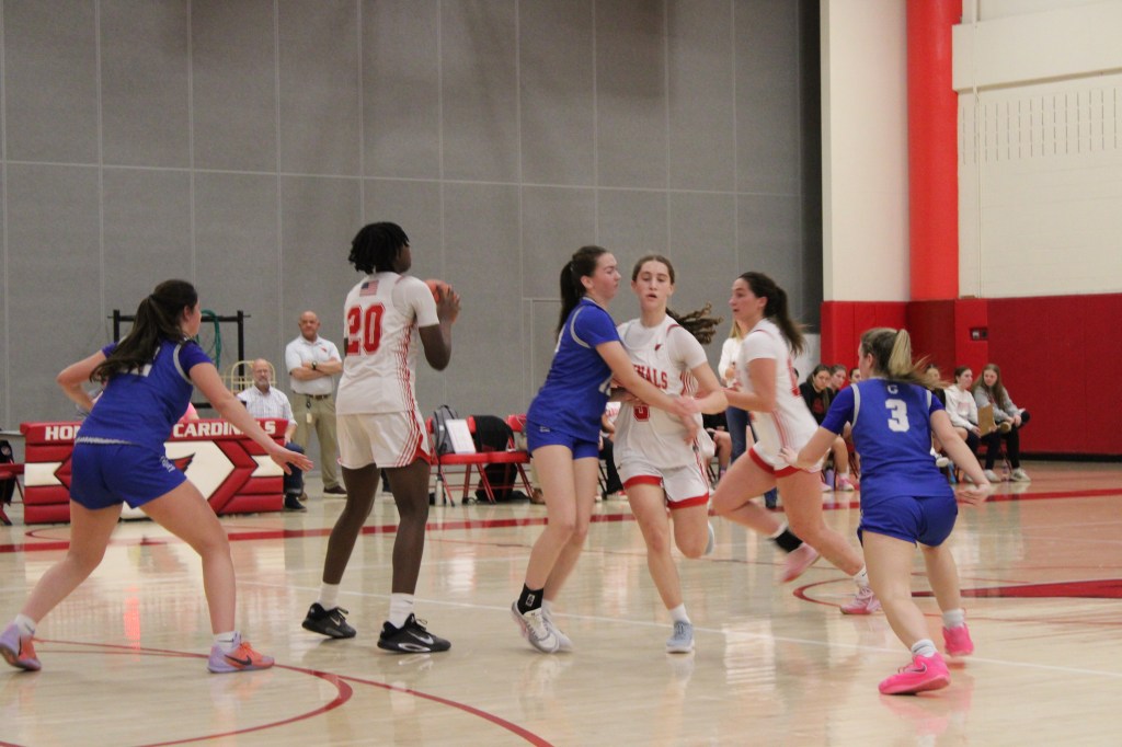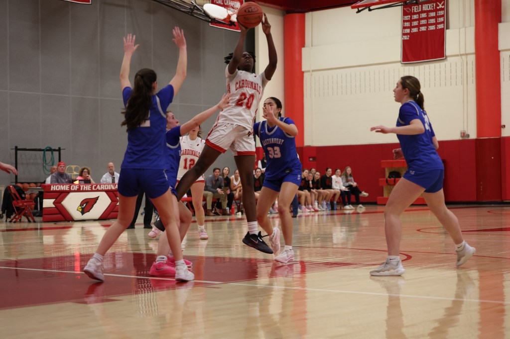 The host Cardinals began pulling away from the Guardians late in the first quarter. A layup by senior guard/captain Juliette Pelham and a jumper from the corner, gave the Cards a 15-9 lead. Utzinger made a fastbreak layup and Kiernan swished a 3-pointer from the right corner, making it 20-9 in favor of the home team after the first quarter of action.