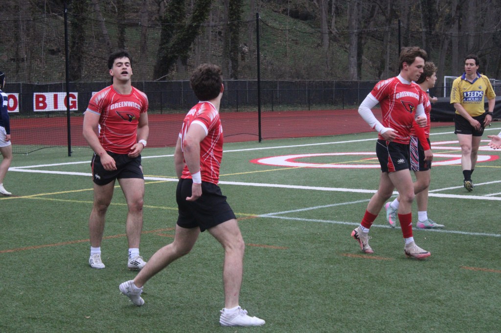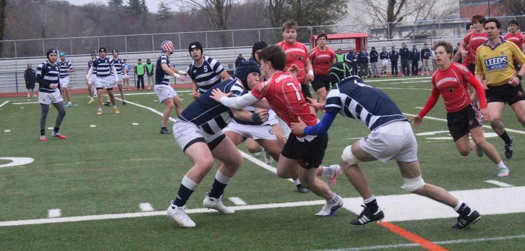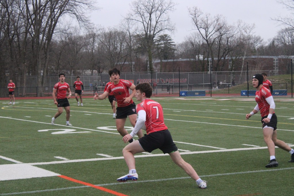 Nick Martschenko, a senior, showed his speed for the Cardinals in this matchup. Martschenko, who excelled on Greenwich’s varsity boys soccer team, which made it to the Class LL Tournament’s state championship game this past fall, scored tries with 10:30 remaining and 8:42 left, giving GHS a 61-8 lead on the Wreckers.