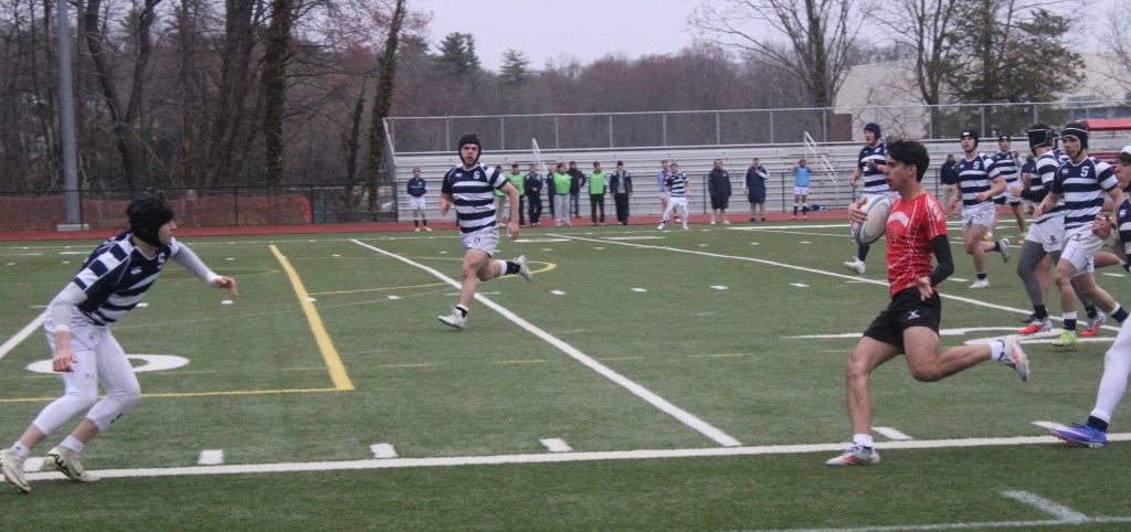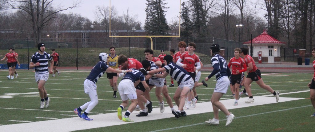 The members of the Greenwich High School Varsity A boys rugby team made the try zone their second home during their home game against in-state rival Staples on April 2nd at Cardinal Stadium.