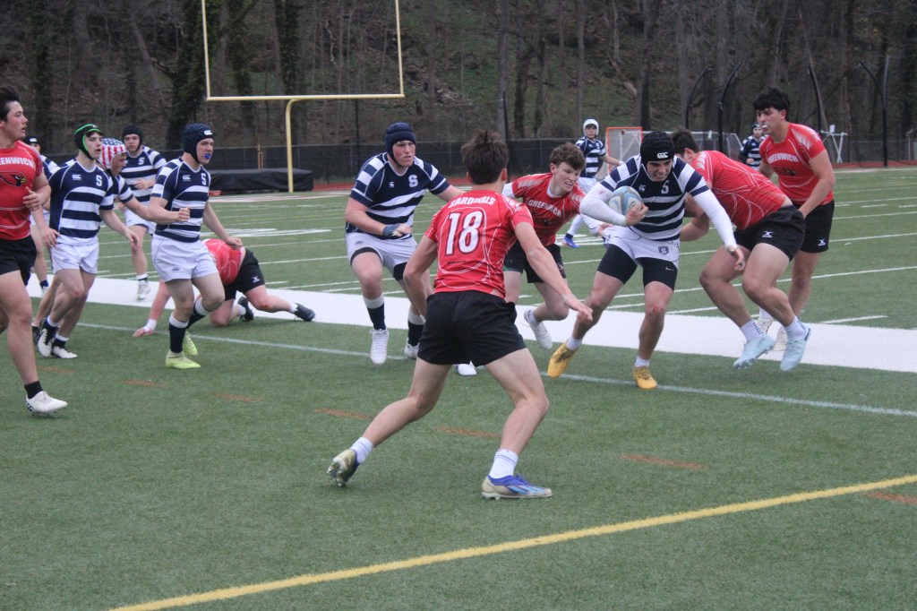 Following a strong first half with an outstanding second half, defending Connecticut State Champion Greenwich rolled to a resounding 68-8 win over Staples, evening its early-season record to 1-1. Greenwich, which has 12 state championships to its impressive history, took a 19-8 advantage on the Wreckers into halftime then steadily added on to its lead in the second half. Senior Aidan Byrne, senior Elliott Korsun and Santiago (Santi) Flynn, also a senior scored one try apiece in the opening half to pace the Cardinals’ offense.