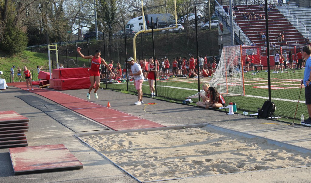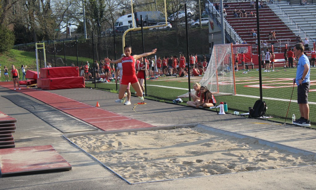 Freshman Orly Christie of Greenwich won the pole vault (5’0) and was the runner-up in the long jump (14’6.75) for the Cardinals (1-0).